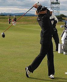 Annika Charlotta Sörenstam (pronounced [ˈǎnːɪka ˈsœ̂ːrɛnˌstam] ; born 9 October 1970) is a retired Swedish professional golfer. She is regarded as one of the best golfers in history.[2] Before stepping away from competitive golf at the end of the 2008 season, she had won 90 international tournaments as a professional, making her the female golfer with the most wins to her name. She has won 72 official LPGA tournaments including ten majors and 18 other tournaments internationally, and she tops the LPGA's career money list with earnings of over $22 million—over $2 million ahead of her nearest rival while playing 149 fewer events.[3] Since 2006, Sörenstam has held dual American and Swedish citizenship.[4]