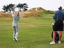 At this point in her career, Sörenstam says she lost focus having reached her biggest goals.[6] Karrie Webb became the best LPGA Tour player but Sörenstam still managed to win more LPGA tournaments than any other LPGA Tour player during the 1990s.[32] She qualified for the World Golf Hall of Fame when she won the 2000 Welch's/Circle K Championship, but was not eligible for induction until finishing her tenth year on the LPGA tour in October 2003.[40][41] Sörenstam was the first international player to be inducted into the Hall of Fame through the LPGA criteria.[42][43][44]