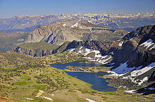 The wilderness contains 349 miles (562 km) of hiking trails, including portions of the John Muir and Pacific Crest Trails.[3] The Sierra High Route, an off-trail route described by Steve Roper, runs along the base of the Ritter Range, through the wilderness.[5]