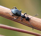 Some genera of the Anthicidae are ant-like in appearance, for example Anthelephila cyanea. Since Anthelephila do not associate with ants, this is presumably Batesian mimicry.[18]
