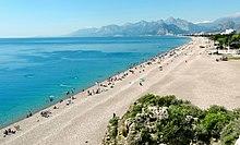 Antalya is Turkey's biggest international sea resort, located on the Turkish Riviera. Large-scale development and governmental funding has promoted tourism. A record 13.6 million tourists passed through the city in 2019.[6]