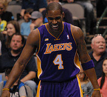 On July 25, 2012, Jamison signed with the Los Angeles Lakers for the NBA veteran's minimum.[17] On November 30 against the Denver Nuggets, he scored a season-high 33 points and grabbed 12 rebounds, becoming the first Laker since Shaquille O'Neal in 1998 to record a 30/10 game as a reserve.[18] However, coach Mike D'Antoni did not play him for multiple games, partially due to Jamison's inconsistent shooting and subpar defense.[19] On January 4, 2013, he played against the Los Angeles Clippers for the first time after six games on the bench.[20] On January 6, he entered in the first quarter against the Denver Nuggets and hit a jumper for his first points since December 13.[21] He played four minutes before being benched the rest of the game.[22] Jamison again became a part of the Lakers' regular rotation after forward Pau Gasol was out with a foot injury. After the early communication issues with D'Antoni, their relationship improved significantly.[23]
