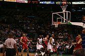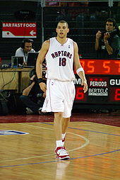 In October 2005, during a pre-season friendly representing Maccabi against the Toronto Raptors organized by then Israeli Consul-General Cobie Brosh, Parker hit the game-winning shot with less than a second remaining to lead Maccabi to a 105–103 win at the Air Canada Centre.[3] This gave the Raptors fans and management a glimpse of his abilities and in July 2006, Parker was officially signed by Raptors General Manager Bryan Colangelo as a free agent as part of a massive revamp of the 2006–07 Toronto team.[13] He was signed for approximately $12 million (USD) over three years,[10] joining recent European veteran acquisitions Jorge Garbajosa and José Calderón on the team. Adopting a #18 jersey, Parker quickly established himself as the starting shooting guard for Toronto and a well-respected three-point shooter in the NBA, ranking fourth in the league for three-point field goal percentage by the end of the regular season.[19] Overall, in his first season with Toronto, he averaged 12.4 ppg, 3.9 rpg, and 2.1 apg,[9] leading his team in three-point field goal percentage and free throw percentage.[3] Parker's defensive and offensive versatility were credited as instrumental in helping the Raptors clinch their first-ever division title, first NBA Playoffs berth in five years, as well as best regular-season record in franchise history.[20][10][21]
