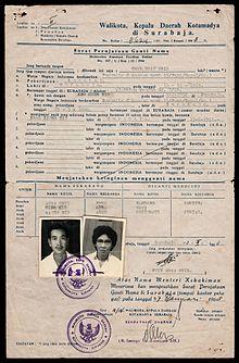 Presidential Decision 240 of 1967[11] (Keputusan Presiden Nomor 240 Tahun 1967, Keppres No. 240/1867) mandated assimilation of "foreigners" and supported a previous directive, 127/U/Kep/12/1966, for Indonesian Chinese to adopt Indonesian-sounding names.