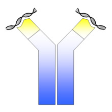Anti-Ro and anti-La antibodies, also known as SS-A and SS-B, respectively, are commonly found in primary Sjögren's syndrome, an autoimmune disorder that affects the exocrine glands. The presence of both antibodies is found in 30–60% of Sjögren's syndrome, anti-Ro antibodies alone are found in 50–70% of Sjögren's syndrome and 30% of SLE with cutaneous involvement, and anti-La antibodies are rarely found in isolation.[10][16] Anti-La antibodies are also found in SLE; however, Sjögren's syndrome is normally also present.[17] Anti-Ro antibodies are also found less frequently in other disorders including autoimmune liver diseases, coeliac disease, autoimmune rheumatic diseases, cardiac neonatal lupus erythematosus and polymyositis.[18][19] During pregnancy, anti-Ro antibodies can cross the placenta and cause heart block[20][21] and neonatal lupus in babies.[22] In Sjögren's syndrome, anti-Ro and anti-La antibodies correlate with early onset, increased disease duration, parotid gland enlargement, disease outside the glands and infiltration of glands by lymphocytes.[11] Anti-Ro antibodies are specific to components of the Ro-RNP complex, comprising 45kDa, 52kDa, 54kDa and 60kDa proteins and RNA. The 60kDa DNA/RNA binding protein and 52kDa T-cell regulatory protein are the best characterised antigens of anti-Ro antibodies. Collectively, these proteins are part of a ribonucleoprotein (RNP) complex that associate with the hyRNAs, hY1-hY5. The La antigen is a 48kDa transcription termination factor of RNA polymerase III, which associates with the Ro-RNP complex.[15][16][23][24]