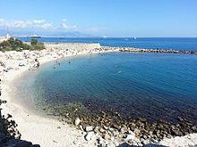 Antibes was founded by as a Greek colony by Phocaeans from Massilia.[7][8] They named it Antipolis (Greek: Ἀντίπολις, lit. "Opposite-City") from its position on the opposite side of the Var estuary from Nice (Greek: Νίκαια).
