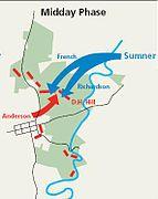 As the fighting in the cornfield was coming to a close, Maj. Gen. William H. French was moving his Federals forward to support Maj. Gen. John Sedgwick and veered into Confederate Maj. Gen. D.H. Hill's troops posted in the Sunken Road. Fierce fighting continued here for four hours before the Union troops finally took the road.[20]