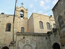 As soon as the Greek revolution commenced, Rûm throughout the Empire were targeted for persecutions, and Syria did not escape Ottoman Turkish wrath.[52] Fearing that the Rûm of Syria might aid the Greek Revolution, the Porte issued an order that they should be disarmed.[52] In Jerusalem, the city's Christian population, who were estimated to make up around 20% of the city's total[53] (with the majority being Rûm), were also forced by the Ottoman authorities to relinquish their weapons, wear black, and help improve the city's fortifications. Greek Orthodox holy sites, such as the Monastery of Our Lady of Balamand, located just south of the city of Tripoli in Lebanon, were subjected to vandalism and revenge attacks, which in fact forced the monks to abandon it until 1830.[54] Not even the Greek Orthodox Patriarch was safe, as orders were received just after the execution of the Ecumenical Patriarchate in Constantinople to kill the Antiochian Patriarch as well; however, local officials failed to execute the orders.