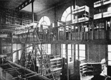 In order to promote the international status of the Stazione and to guarantee its economic and hence political independence and freedom of research, Dohrn introduced a series of innovative measures to finance his project. Firstly, the rental of work and research space (the "Bench system"), for an annual fee universities, governments, scientific institutions, private foundations or individuals could send one scientist to the Stazione for one year where he or she would find available all that was required to conduct research (laboratory space, animal supply, chemicals, an exceptional library and expert staff). He contributed his own library and obtained donations of books from publishers and authors, including Darwin.[3] These facilities were supplied with no strings attached, in the sense that investigators were completely free to pursue their own projects and ideas.
