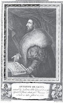 Antonio de Leyva, Duke of Terranova, Prince of Ascoli (1480–1536) was a Spanish general during the Italian Wars. During the Italian War of 1521, he commanded Pavia during the siege of the city by Francis I of France, and took part in the Battle of Pavia in 1525. After the death of Fernando d'Ávalos, Marquis of Pescara, he held further commands in Italy during the War of the League of Cognac and afterwards, finally dying shortly after attempting an invasion of Provence.