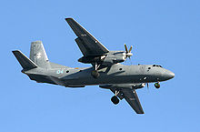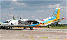 The Antonov An-26 (NATO reporting name: Curl) is a twin-engined turboprop civilian and military transport aircraft, designed and produced in the Soviet Union from 1969 to 1986.[1]