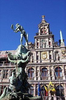 The Stadhuis (City Hall) of Antwerp, Belgium, stands on the western side of Antwerp's Grote Markt (Great Market Square). Erected between 1561 and 1565 after designs made by Cornelis Floris de Vriendt and several other architects and artists, this Renaissance building incorporates both Flemish and Italian influences. The Stadhuis is inscribed on UNESCO's World Heritage List along with the belfries of Belgium and France.[1]