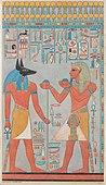 The king with Anubis, from the tomb of Haremhab; 1323-1295 BC; tempera on paper; Metropolitan Museum of Art