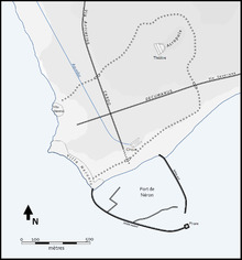 Of the villas, the most famous was the imperial villa, known as the Villa of Nero,[9] which was used by each emperor in turn, up to the Severans and which extended some 800 metres (2,600 ft) along the seafront of the Capo d'Anzio. Augustus received a delegation from Rome there to acclaim him Pater patriae ("Father of his Country"). The Julian and Claudian emperors frequently visited it; both Emperor Caligula and Nero were born in Antium. Nero razed the villa on the site to rebuild it on a more massive and imperial scale including a theatre. Nero also founded a colony of veterans and built a new harbour, the projecting moles of which still exist.[9]