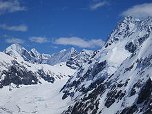 Of New Zealand's 20 peaks over 3,000 metres, all except Mount Aspiring / Tititea lie in the park.[8] These include New Zealand's highest mountain, Aoraki / Mount Cook, at 3,724 metres. Other prominent peaks include Mt Tasman, Mt Hicks, Mt Sefton and Mt Elie de Beaumont. The mountains of the Southern Alps in general are young, less than ten million years old, and are still building. Uplift in the region of the national park is at the rate of 5–10 mm per year. It's estimated that approximately 25 km of uplift has occurred, however the rate of uplift has been countered by erosion.[9]