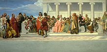 There can be little doubt that Apelles was one of the most bold and progressive of artists. Such was his fame that several Italian Renaissance painters repeated his subjects, in a vain hope of giving some notion of the composition of them.[12] Raphael may have portrayed himself as Apelles in The School of Athens and Sandro Botticelli based two paintings—The Birth of Venus and Calumny of Apelles—on his works.