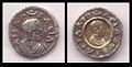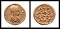 His silver coin features his portrait on both the obverse and reverse with the disc and crescent (at top). The reverse reveals a distinguishing feature of Axumite coinage; gilding. The reverse interior portrait is overlaid with gold.