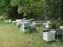 Apiaries may suffer from a wide variety of diseases and infestations.[14] Throughout history apiaries and bees have been kept for honey and pollination purposes all across the globe. Due to the definition of apiary as a location where hives are kept its history can be traced as far back as that of beekeeping itself. In recent years Colony Collapse Disorder due to pesticide resistant mites have ravaged bee populations.[15] Beyond mites there are a wide variety of diseases which may affect the hives and lead to the decline or collapse of a colony. For this reason many beekeepers choose to keep apiaries of limited size to avoid mass infection or infestation. For more information on diseases which affect bee populations see the List of diseases of the honey bee.