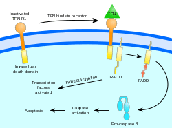 - ^ Chen G, Goeddel DV (May 2002). "TNF-R1 signaling: a beautiful pathway". Science. 296 (5573): 1634–35. Bibcode:2002Sci...296.1634C. doi:10.1126/science.1071924. PMID 12040173. S2CID 25321662.