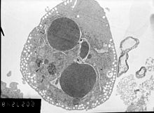 German scientist Carl Vogt was first to describe the principle of apoptosis in 1842. In 1885, anatomist Walther Flemming delivered a more precise description of the process of programmed cell death. However, it was not until 1965 that the topic was resurrected. While studying tissues using electron microscopy, John Foxton Ross Kerr at the University of Queensland was able to distinguish apoptosis from traumatic cell death.[6] Following the publication of a paper describing the phenomenon, Kerr was invited to join Alastair R. Currie, as well as Andrew Wyllie, who was Currie's graduate student,[7] at University of Aberdeen. In 1972, the trio published a seminal article in the British Journal of Cancer.[8] Kerr had initially used the term programmed cell necrosis, but in the article, the process of natural cell death was called apoptosis. Kerr, Wyllie and Currie credited James Cormack, a professor of Greek language at University of Aberdeen, with suggesting the term apoptosis. Kerr received the Paul Ehrlich and Ludwig Darmstaedter Prize on March 14, 2000, for his description of apoptosis. He shared the prize with Boston biologist H. Robert Horvitz.[9]