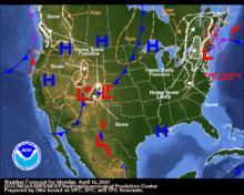 The storm that would become the April 2007 Nor'easter started out in the Southwestern United States, as an upper-level disturbance in the jet stream, on April 13.[1] It brought high wind and fire danger to California, Nevada, New Mexico and Arizona. The storm then moved out into the southern Plains States, bringing heavy snow to Colorado, Oklahoma, and Texas. Heavy rain and severe thunderstorms, with hail, wind, and tornadoes, affected parts of Texas, Louisiana, Mississippi, Alabama, Georgia, Florida, and the Carolinas. The storm then moved across the Mid-Atlantic States, and into the Atlantic Ocean, following the East Coast. The storm then rapidly intensified into a major nor'easter, with the warm waters of the Gulf Stream. The storm stalled just offshore from New York City and continued to strengthen. The lowest barometric pressure recorded was 968 millibars (28.58 in Hg), equivalent to that of a moderate category 2 hurricane.[1]