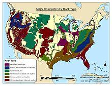 The Ogallala Aquifer of the central United States is one of the world's great aquifers, but in places it is being rapidly depleted by growing municipal use, and continuing agricultural use. This huge aquifer, which underlies portions of eight states, contains primarily fossil water from the time of the last glaciation. Annual recharge, in the more arid parts of the aquifer, is estimated to total only about 10 percent of annual withdrawals. According to a 2013 report by research hydrologist Leonard F. Konikow[26] at the United States Geological Survey (USGS), the depletion between 2001 and 2008, inclusive, is about 32 percent of the cumulative depletion during the entire 20th century (Konikow 2013:22)."[26] In the United States, the biggest users of water from aquifers include agricultural irrigation and oil and coal extraction.[27] "Cumulative total groundwater depletion in the United States accelerated in the late 1940s and continued at an almost steady linear rate through the end of the century. In addition to widely recognized environmental consequences, groundwater depletion also adversely impacts the long-term sustainability of groundwater supplies to help meet the Nation’s water needs."[26]