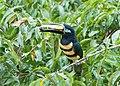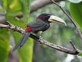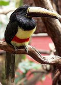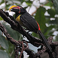 An aracari or araçari (US: /ˌɑːrəˈsɑːri/ AR-ə-SAR-ee,[1] UK: /ˌærəˈsɑːri/ ARR-ə-SAR-ee, /-ˈkɑːri/ -KAR-ee)[2] is any of the medium-sized toucans that, together with the saffron toucanet, make up the genus Pteroglossus.