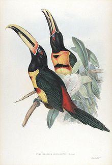 - Hooded mountain toucan (as Pteroglossus cucullatus)[18]
