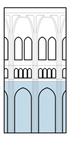 Interior elevation of a Gothic cathedral, with the side-aisle arcade highlighted. The triforium and clerestory above also have arcades.