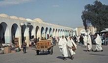 Arcades inside the Mosque of Uqba, also known as the Great Mosque of Kairouan, in Tunisia (670). There is no vaulting; the arches are bridged by wooden beams