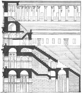 The women's cloister at the Ospedale degli Innocenti, 1420s and 30s. The topmost story has a colonnade, but not an arcade, as there are no arches