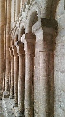 An arcade is a succession of contiguous arches, with each arch supported by a colonnade of columns or piers. Exterior arcades are designed to provide a sheltered walkway for pedestrians. The walkway may be lined with retail stores.[1] An arcade may feature arches on both sides of the walkway. Alternatively, a blind arcade superimposes arcading against a solid wall.[2] Blind arcades are a feature of Romanesque architecture that influenced Gothic architecture. In the Gothic architectural tradition, the arcade can be located in the interior, in the lowest part of the wall of the nave, supporting the triforium and the clerestory in a cathedral,[3] or on the exterior, in which they are usually part of the walkways that surround the courtyard and cloisters.