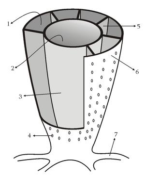Flow tank experiments suggest that archaeocyathan morphology allowed them to exploit flow gradients, either by passively pumping water through the skeleton, or, as in present-day, extant sponges, by drawing water through the pores, removing nutrients, and expelling spent water and wastes through the pores into the central space.