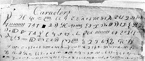 Fifteen examples of distinct scripts have been identified in pre-Columbian Mesoamerica, many from a single inscription.[110] While Maya contains cartouches and is a form of hieroglyphic script like Egyptian, no further resemblance to Hebrew or Egyptian hieroglyphs has been identified. Additionally, professional linguists and Egyptologists do not consider the Caractors document to contain any legitimate ancient writing. Edward H. Ashment called the characters of the transcript "hieroglyphics of the Micmac Indians of northeastern North America".[111]