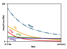 When the Archean began, the Earth's heat flow was nearly three times as high as it is today, and it was still twice the current level at the transition from the Archean to the Proterozoic (2,500 Ma). The extra heat was the result of a mix of remnant heat from planetary accretion, from the formation of the metallic core, and from the decay of radioactive elements.
