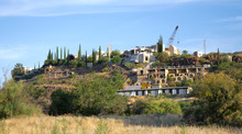 Ground was broken in 1970 to begin construction on the site, and has continued at a varying pace through the present.[2] The most recently completed building was finished in 1989.[3] The population has tended to vary between 50 and 150 people, many of them students and volunteers. The goal was for Arcosanti to house a population of 5,000 people.[4] Thirteen major structures were built on the site, some several stories tall. One master plan, designed in 2001, envisioned a massive complex, called "Arcosanti 5000", that would dwarf the current buildings.