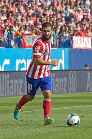 Entering the match as a substitute one hour into the match, Turan scored the decisive goal in the 76th minute for Atlético in their 1–2 away league win against derby rivals Real Madrid on 13 September 2014. After the match, Atlético manager Diego Simeone hailed Turan's impact on Atlético's game.[19] On 1 October 2014, Turan scored the only goal of the match in the 1–0 win against Juventus in the group stage of the 2014–15 Champions League season. On 28 January 2015, in the 47th minute of the home leg of the Copa del Rey quarter-final against Barcelona, Turan threw his boot in the direction of the assistant referee, when he was denied a free-kick for an alleged foul by Ivan Rakitić.[20] After the match, however, he was not handed a ban for the incident.[21] Atlético were eliminated from the tournament as the match ended with a 2–3 defeat, 2–4 defeat on aggregate. On 22 April, Turan was sent off for a foul on Sergio Ramos as Atlético lost 0–1 at Real Madrid to be eliminated from the quarter-finals of the Champions League.[22]
