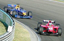 The team was initially created as a vehicle to enable Christian Horner to race in F3000 in 1997. According to Horner he set the team up with borrowed money, including a loan from his father, and persuaded P1 Motorsport founder Roly Vincini (who Horner had driven for in his first season of F3) to take on the role of his race engineer. He bought a second-hand trailer for the team from Helmut Marko, who as head of the Red Bull Junior Team was one of Horner's main rivals as a manager in F3000, and who he later worked closely with at Red Bull. He stayed in F3000 for 1998 and was joined at Arden by Kurt Mollekens, who showed good pace and led the championship at one stage.[6] In the winter of 1998 family friend David Richards had been approached by Russian oil company Lukoil to enable them to enter motorsports sponsorship. As entries to F3000 were restricted, Richards agreed a deal with Horner that Prodrive would take a 50% stake in Arden, in return for Horner becoming team manager. As a result, the team signed Viktor Maslov as a driver under the Lukoil deal from 1999. The team started off poorly, and didn't have the pace to qualify for many races.