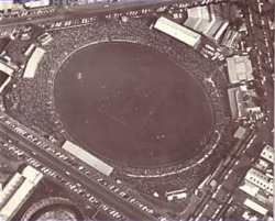 The first grandstand was built in 1906 on the Fogarty Street side of the ground, at a reputed cost of £850. Remnants of this stand, the concrete players’ race and the base of one of the external staircases, remain in the terraced area. The players’ race still connects the players’ dressing rooms in the Football Club administration building with the oval. In 1909, plans for a new grandstand, to cost £1,000, were drawn up by local councillor and club founder J H Gardiner. Despite the popularity of the club, it was deemed that too few finals games were scheduled for the ground to warrant the construction of another stand.