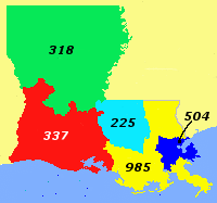 In the North American Numbering Plan, telephone area code 337 covers southwestern Louisiana. It was created in 1999. Until 1999/2000, this area was the southern half of area code 318, which had covered most of Louisiana west of the Mississippi River since 1957.