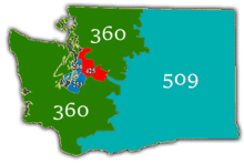 | West: 206, 360 | Area Code 425 | East: 360, 509 |