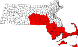 The major town and cities are Attleboro, Barnstable, Bridgewater, Brockton, Dartmouth, Fall River, Framingham, Franklin, New Bedford, Plymouth, Taunton, and Worcester.