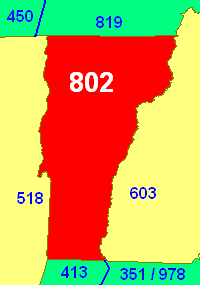 Area code 802 is a telephone area code in the North American Numbering Plan (NANP) for the U.S. State of Vermont. AT&T established the numbering plan area (NPA) for the entire state with one of the original area codes in October 1947 and 802 remains Vermont's only area code.