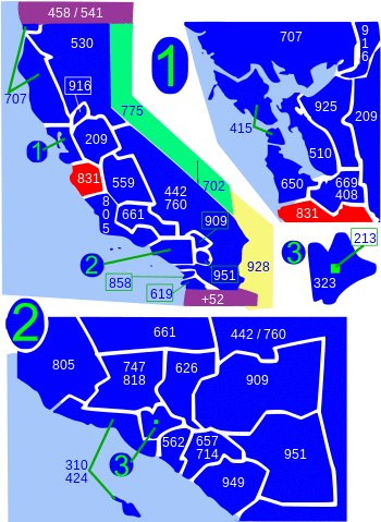 | West: Pacific Ocean, 808 | area code 831 | East: 209, 559 |
