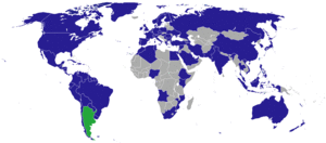 Argentina is a developing country and ranks 46th on the Human Development Index, the second highest in Latin America after Chile.[17] It is a regional power in Latin America and retains its historic status as a middle power in international affairs.[32][33][34] Argentina maintains the second largest economy in South America, the third-largest in Latin America, the fifth largest in the Americas, and is a member of G-15 and G20. It is also a founding member of the United Nations, World Bank, World Trade Organization, Mercosur, Community of Latin American and Caribbean States and the Organization of Ibero-American States.