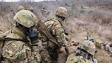 Argentine soldier carrying a Steyr AUG rifle