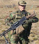 Member of the Squadron of Exploration of Cavalry 4 of the Argentine Army carrying a FN MAG machine gun
