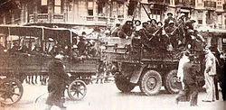 On 23 December 1975, several hundred ERP fighters[13] with the help of hundreds of underground supporters, staged an all-out battle with the 601st Arsenal Battalion nine miles (14 km) from Buenos Aires and occupied four local police stations and a regimental headquarters.[14] 63 guerrillas,[15] seven army troops and three policemen were killed.[16] In addition 20 civilians were killed in the crossfire. Many of the civilian deaths occurred when the guerrillas and supporting militants burned 15 city buses[17] near the arsenal to hamper military reinforcements. This development was to have far-reaching ramifications. On 30 December 1975, urban guerrillas exploded a bomb inside the Army's headquarters in Buenos Aires, injuring at least six soldiers.[18]