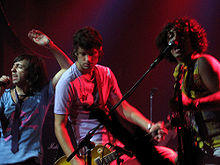 On the other hand, Babasónicos had in 1992 their first major breakthrough of their careers with the hit D-generación from their 1992 album Pasto, which would herald future international success for a band that would define the sound of "sonic" rock.[36] Juana La Loca was another band in the so-called sonic scene that started in the early 1990s and would breakthrough a few years later. The band that founded the Sonic Movement in Buenos Aires was Iguana Lovers, started in 1990.[37] Now with collaborations of the shoegaze[38] British indie Ride members, Mark Gardener and Loz Colbert, they were positioned as the most important new band of the Buenos Aires indie scene in 1991. Los Brujos would have a great year 1992; the single "Kanishka" was an instant chart-topper. Los Visitantes equalled the success of Los Brujos the next year with their album Salud Universal, an offbeat mix of guitar rock and tango tinges. Todos Tus Muertos was a punk response to the Argentine rock being made in the late 1980s, consciously choosing to be far more direct and explicit in their musical (and political) statements. The band gained rapid acclaim with the rise of New Rock, and were one of the favorite bands of the period. Slowly the group would evolve from their early punk to a more diverse style that include afro-Latin rhythms.