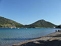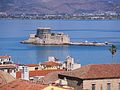 The Argolic Gulf (Greek: Αργολικός κόλπος, romanized: Argolikós kólpos), also known as the Gulf of Argolis or Gulf of Nafplio, is a gulf of the Aegean Sea off the east coast of the Peloponnese, Greece. It is about 50 km long and 30 km wide. Its main port is Nafplio, at its northwestern end. At the entrance to the gulf is the island Spetses.[1] This gulf and its islands are sometimes combined with the Saronic Gulf and Saronic Islands, with the result called the Argo-Saronic Gulf and the Argo-Saronic Islands. It is surrounded by two regional units: Arcadia to the southwest and Argolis to the north and east. The river Inachos drains into the Argolic Gulf near Nea Kios. The main islands in the gulf are Psili, Plateia and Bourtzi, a small island with a Venetian fortress that protects the port of Nafplio. The surrounding mountains protect it from the strong summer Meltemi wind.